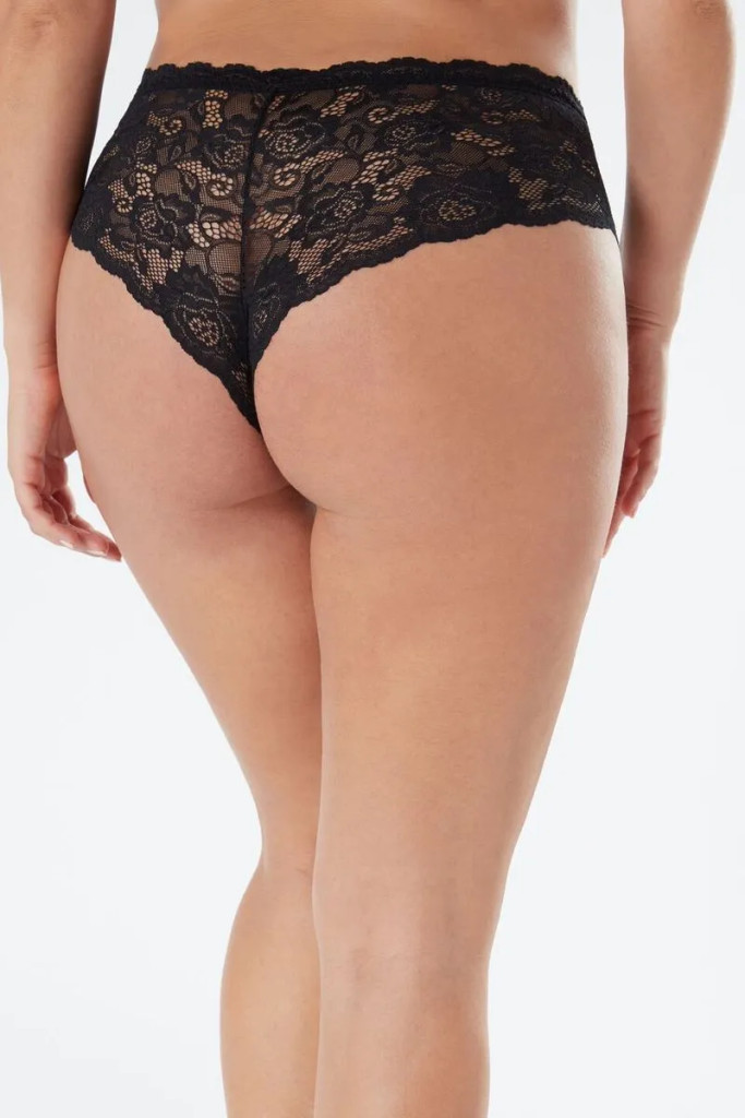 Magas derekú brazil bugyi teljes egészében csipkéből. 100% Pamut bélés.